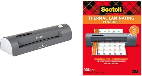 Scotch Thermal Laminator and Pouch Bundle, 2 Roller System, Laminate up to 9" Wide (TL901X) with Scotch Laminating Pouches, 100-Pack (TP3854-100)