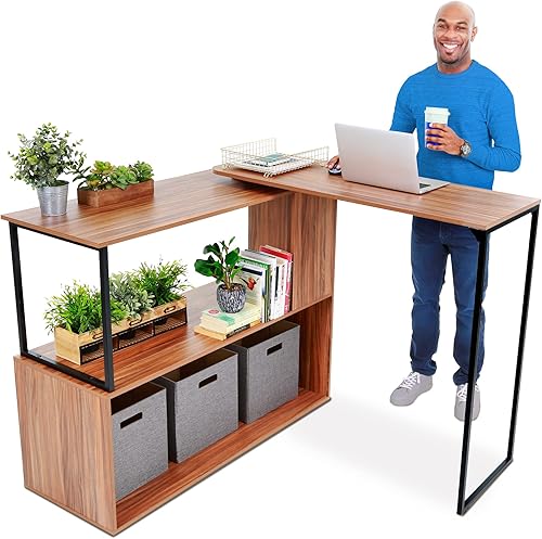 Joy Rotating Standing Desk by Stand Steady | L-Shaped Stand Up Desk for Home Office | Corner Computer Workstation with Storage Shelves | Space-Saving Swivel Desktop for Corners