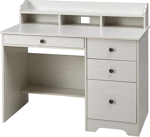 Computer Desk with 4 Storage Drawers and Hutch Shelf, Wood Frame Home Office Desk with Wide Tabletop, Industrial Vintage Style Executive Desk Writing Study Table PC Desk, Oak White
