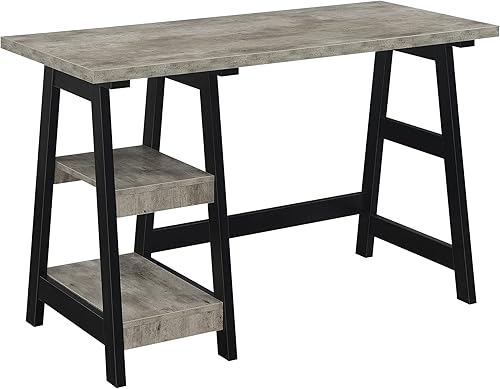 Convenience Concepts Designs2Go Trestle Desk with Shelves, Faux Birch/Black